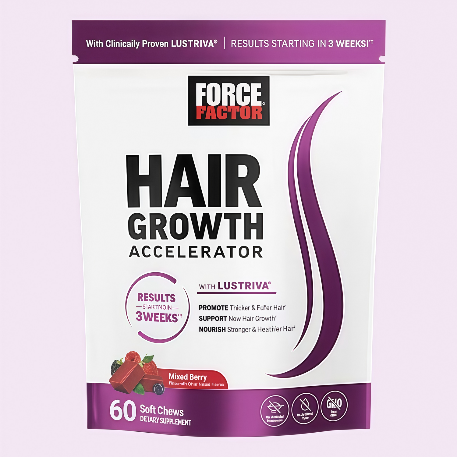 Force Factor® Hair Growth Accelerator is a revolutionary new formula designed to rapidly optimize hair health, strength, thickness, and new hair growth. Its core ingredient is Lustriva®, a unique, scientifically advanced form of bio-vitamin and silicon, scientifically proven to increase hair thickness in just 3 weeks. *In a delicious and convenient soft chewable tablet form, enhancing your look and feel has never been easier.
